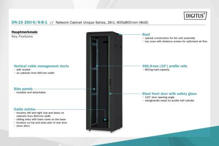 22U Digitus Unique Patchkast, 1164x600x800 mm, kleur zwart (RAL 9005) 66kg