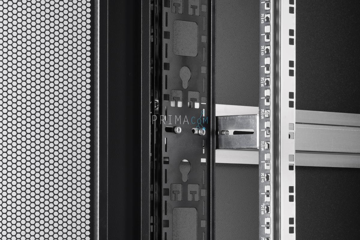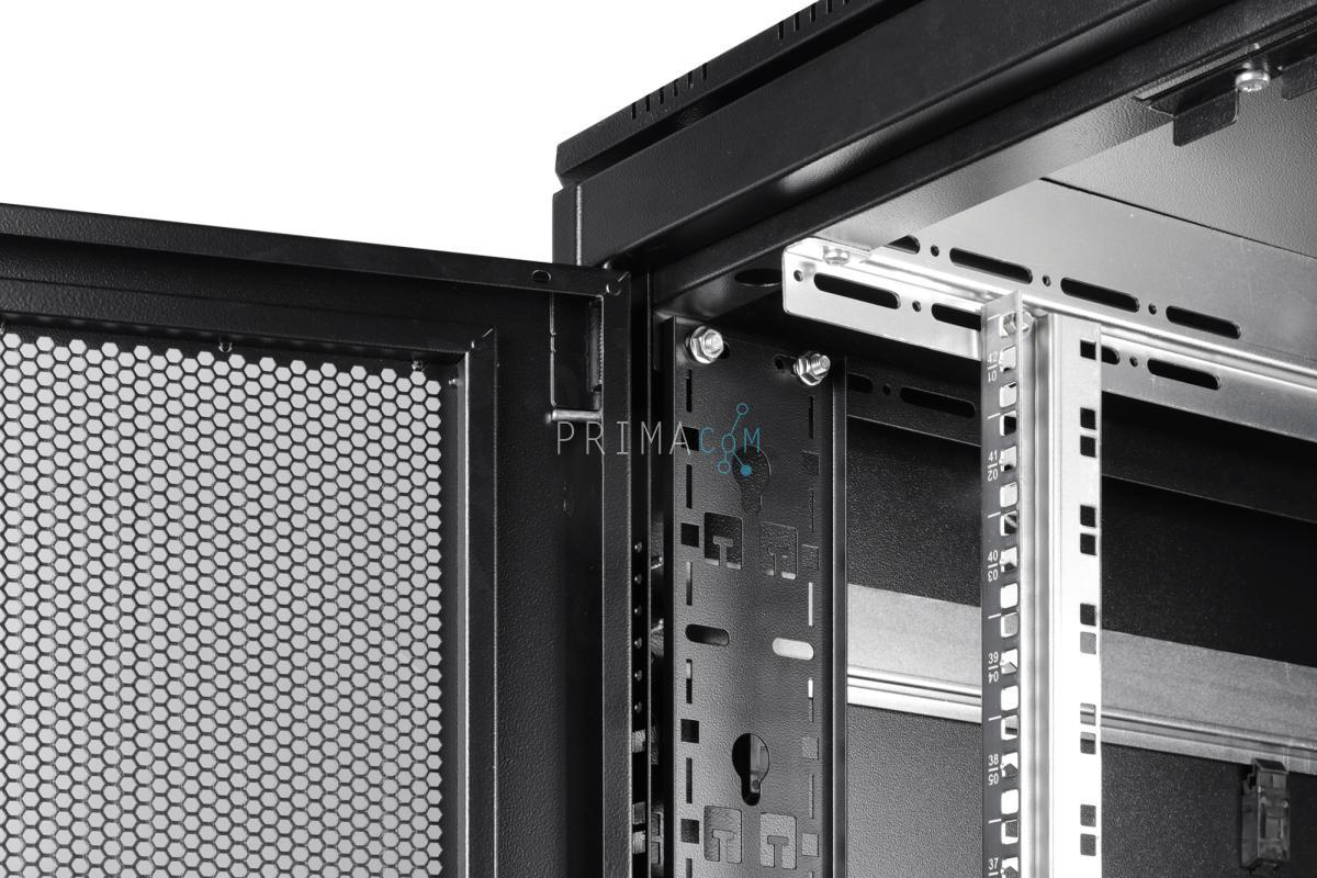 De kast combineert een hoge belastbaarheid met uitgebreide mogelijkheden voor kabelbeheer en koeling, waardoor hij geschikt is voor moderne IT-infrastructuren en datacenteromgevingen.