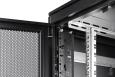 - Verticale kabelkanalen met kabelgeleidingshulpmiddelen en afdekpanelen aan de voorzijde