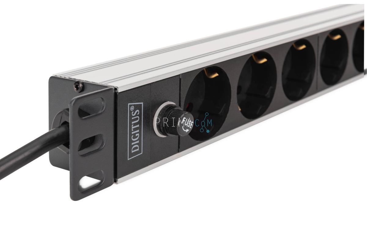 DIGITUS Contactdoos met aluminium profiel en back-up zekering, 9-voudige wandcontactdoos met aardingscontact, 2 m voedingskabel IEC C14-stekker