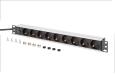1U aluminium PDU, rackmontage, 8x CEE 7/7-uitgang, 1x stekker 10A stekker, 250VAC 50/60Hz, IEC C14 stekker, voorzekering