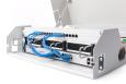 Aan de voorkant wordt een draaibare verticale 3U-rail bevestigd. Deze kan ook horizontaal of onder een hoek worden geplaatst.