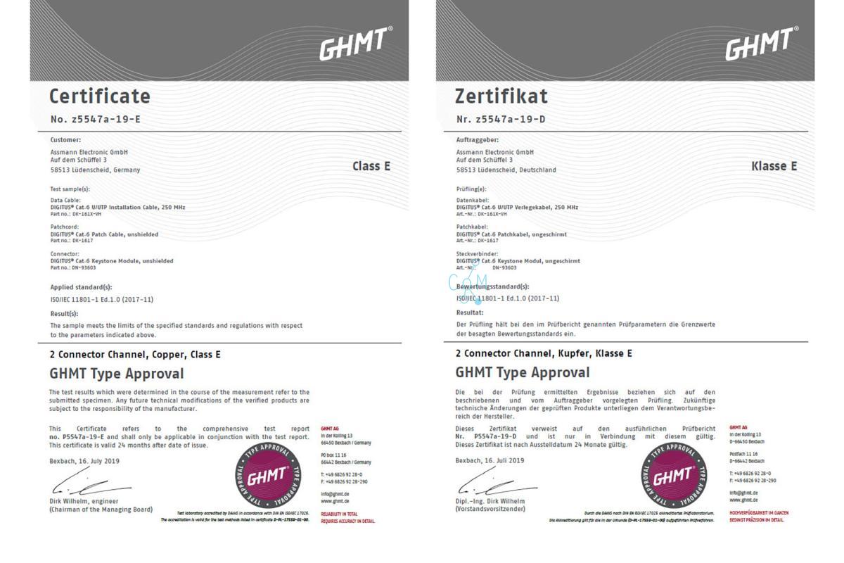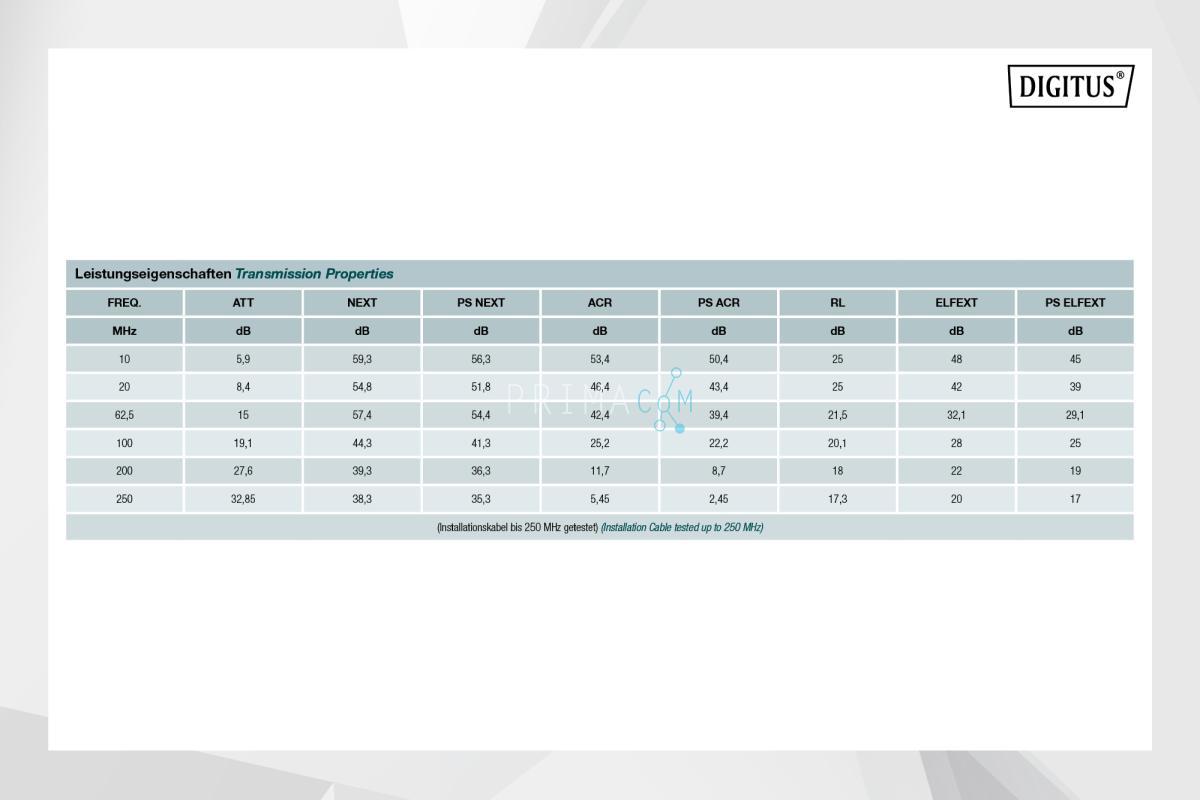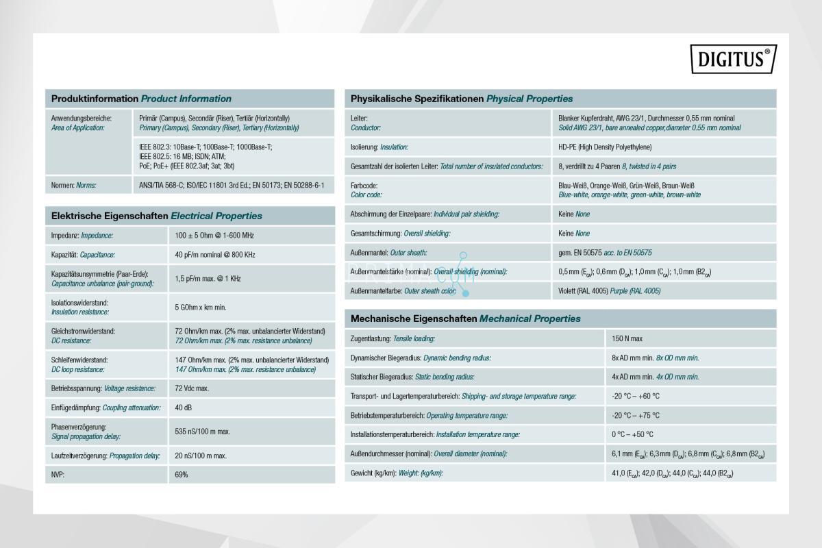 De DIGITUS® Categorie 6 U-UTP installatiekabels worden geproduceerd en getest volgens de specificaties van ISO/IEC 11801, DIN EN 50173 en DIN EN 50288-5-1 Categorie 6.