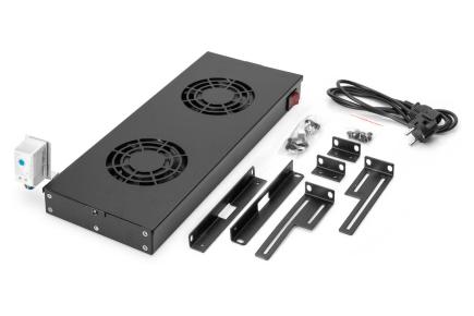 Ventilatoreenheid voor 19" montage, 2 ventilatoren, thermostaat, schakelaar, zwart (RAL 9005)