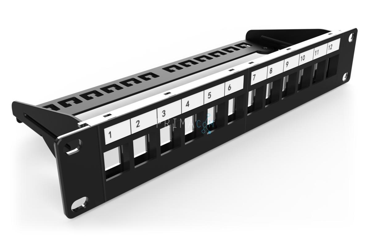 Modular Patch Panel, shielded, 12-port Blank, 1U, 10" Rack Mount, black RAL 9005