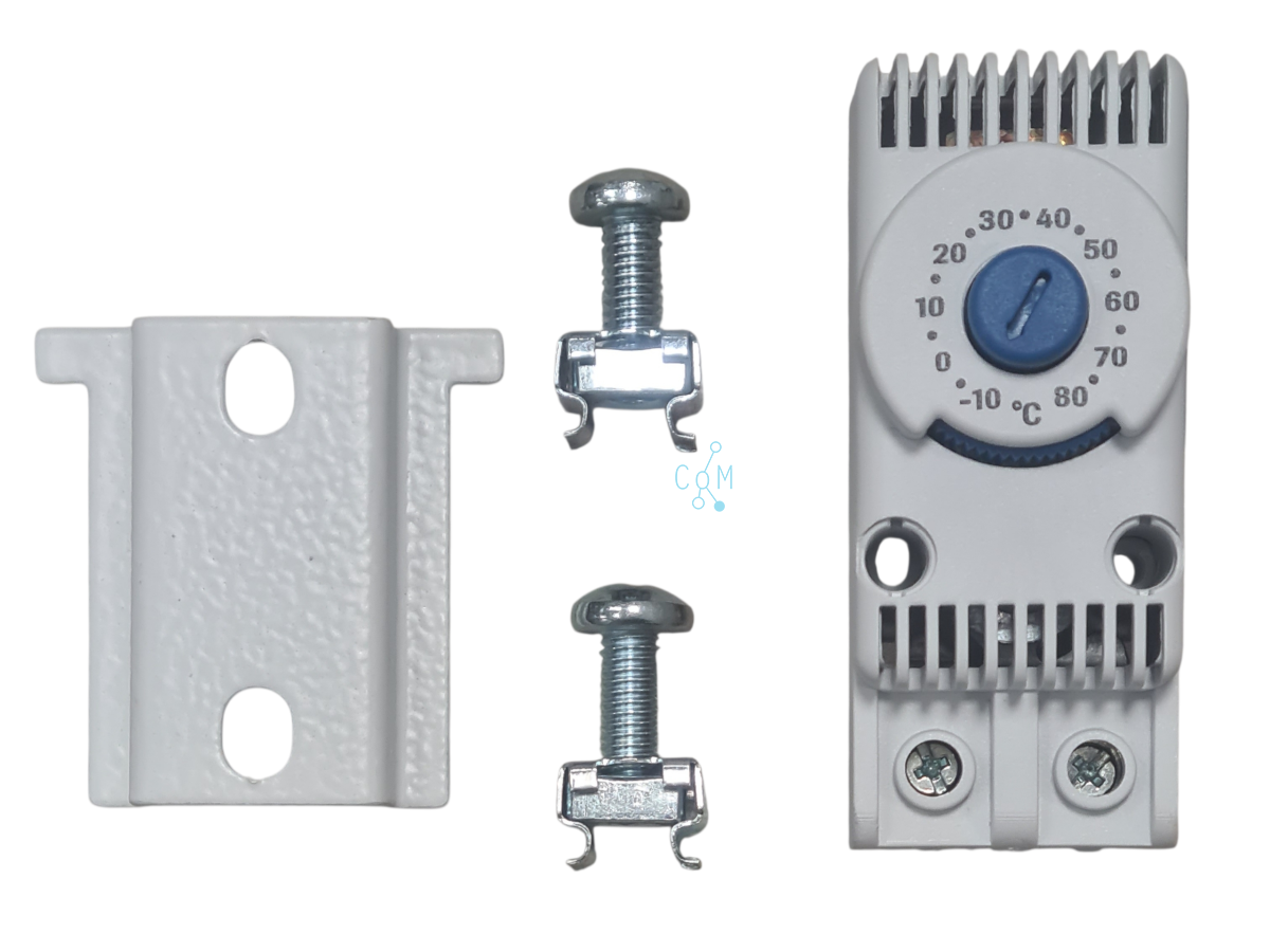 TRT-10A230V NO Thermostaat voor fanunit incl. bevestigingsplaatje met 2 kooimoeren RAL7035