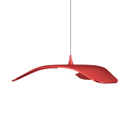 Power 10W Kleur temperatuur4.000K (Natural White) Lumen output 935lm Color Rendering Index (CRI) > 0,80 Power factor > 0,80 Maten Ø 340mm x 52 mm, hanghoogte max 1.200mm Materiaal Aluminium (AL5052) Kleur Rood, mat Geïnspireerd op het profiel van een vliegende zeemeeuw bewijst de Wing de schoonheid van eenvoud. De simpele gebogen vorm van het hoogwaardig aluminium met een dikte van slechts 3 mm onderstreept dat eenvoud siert. Alleen of gegroepeerd opgehangen; de naadloze lamp past in iedere ruimte, in ieder interieur. In een eetkamer of koffiekamer, in een woonkeuken, op het balkon in een theater; overal past de Wing.
